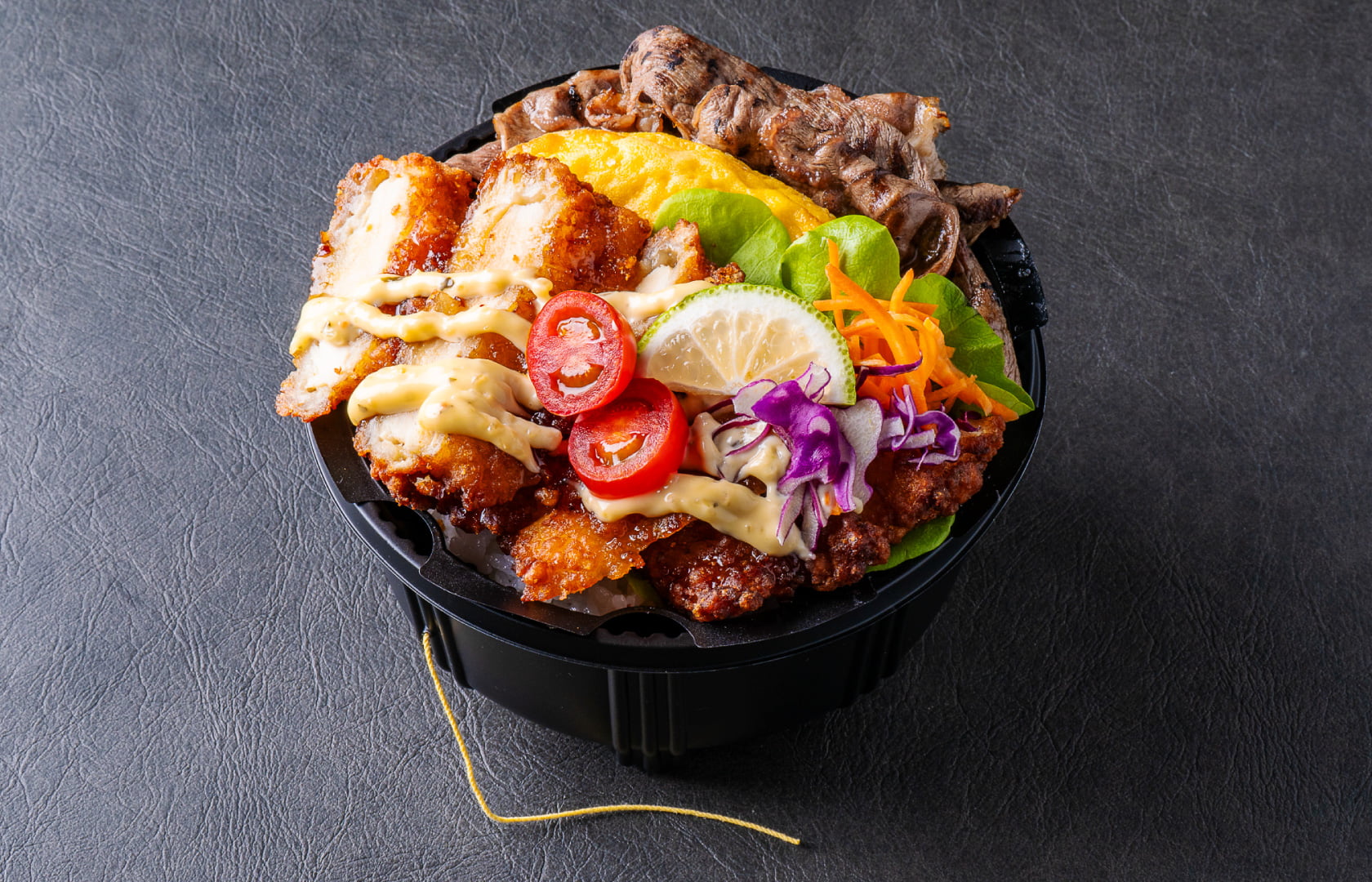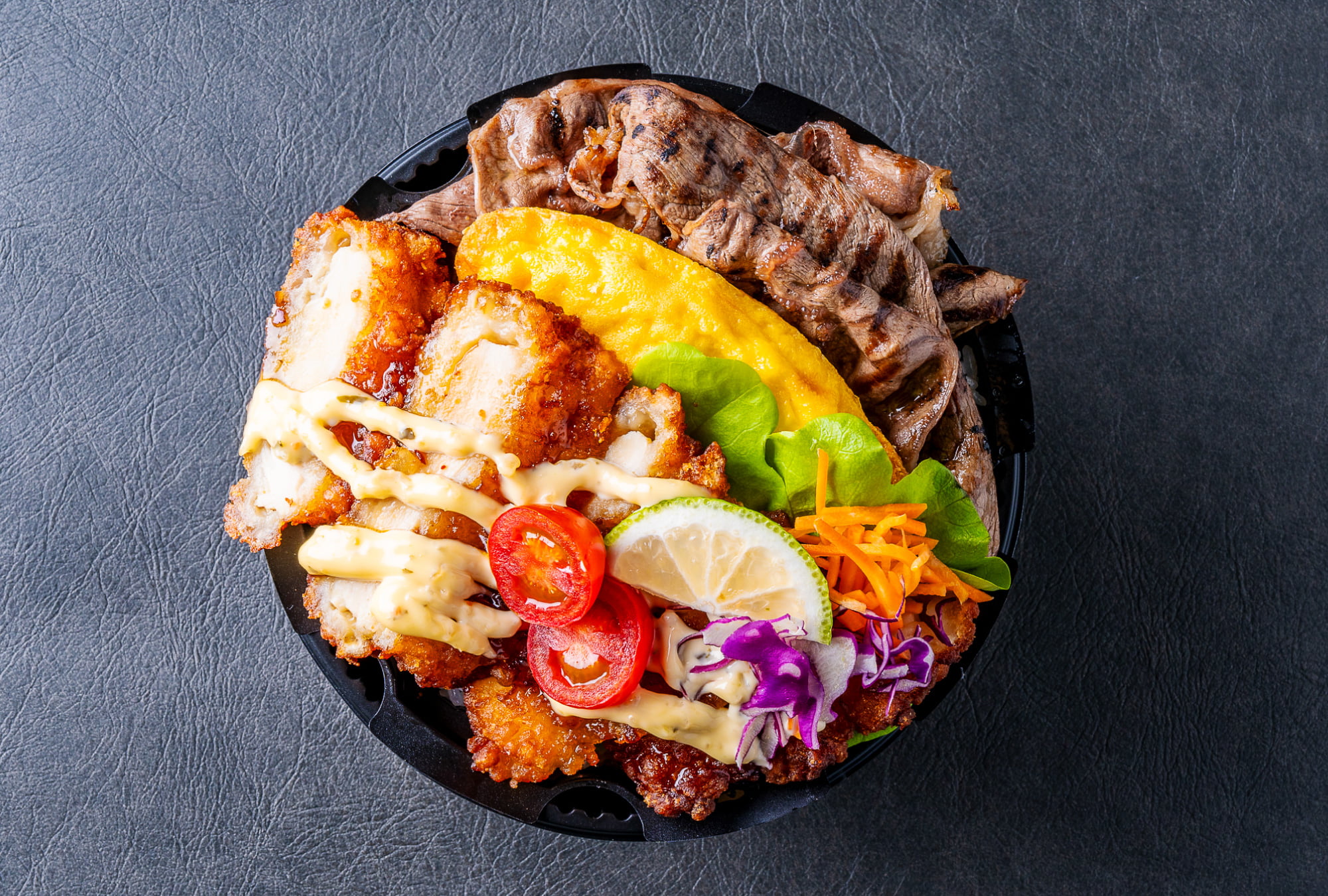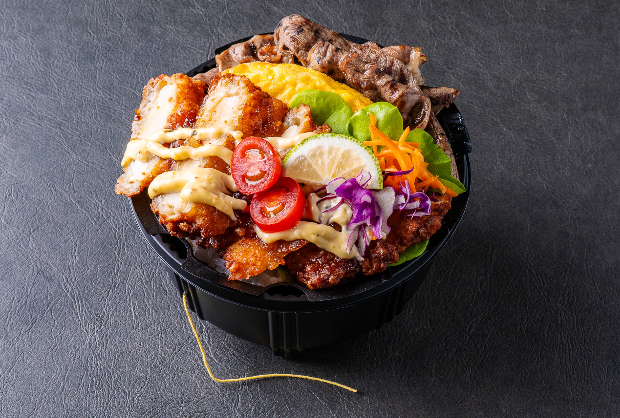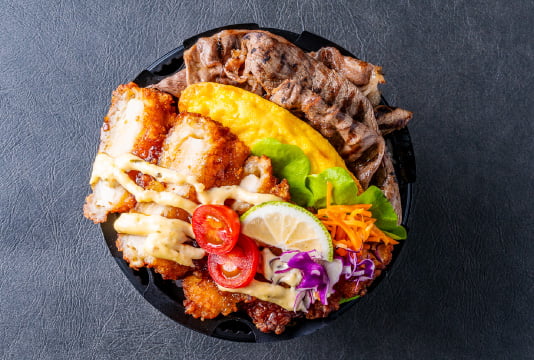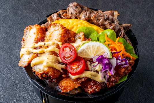 和牛ステーキと甘辛に焼き上げたすき焼き、グリルチキン等お肉好きの為の一品です。